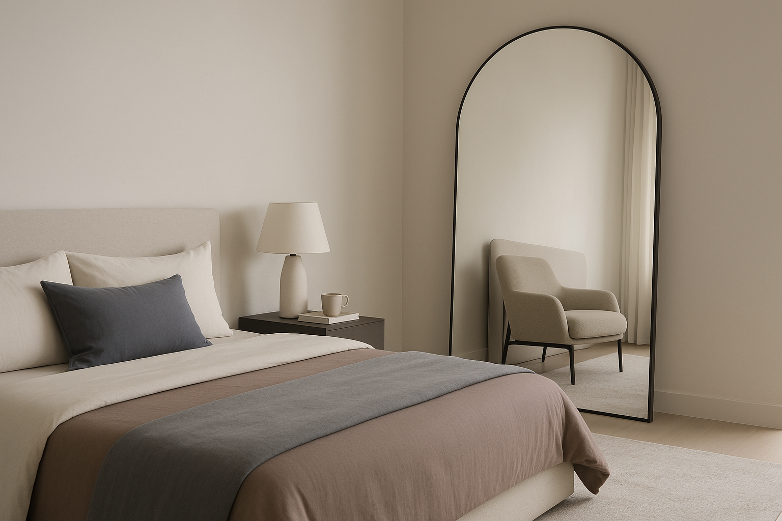 Ob im stilvollen Schlafzimmer, Ankleidezimmer oder einem offen gestalteten Wohnbereich – dieser Spiegel fügt sich nahtlos in anspruchsvolle Interieurs ein und verstärkt durch sein Format das Raumgefühl.