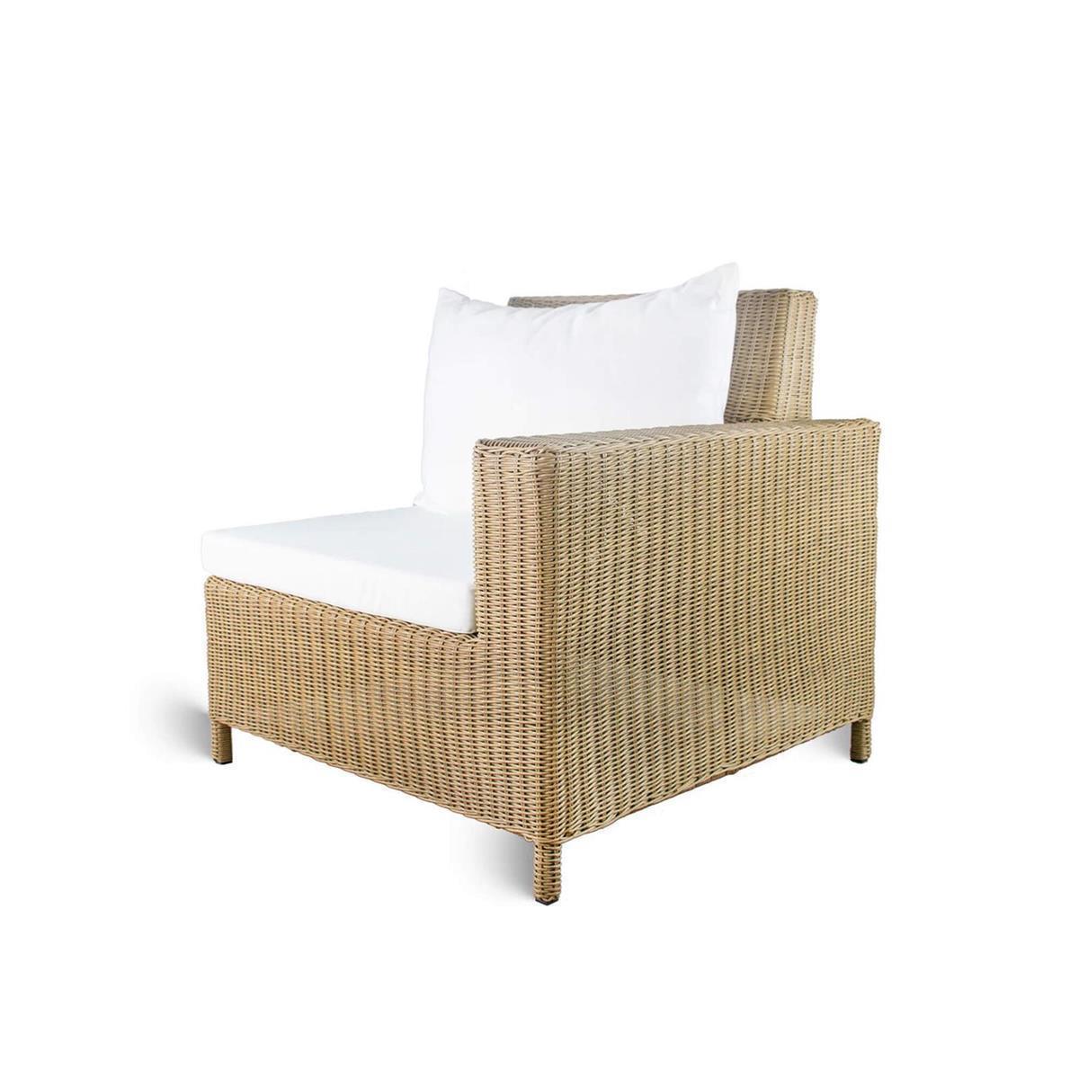 Mit den Farben Beige und Weiß sorgt dieses Lounge-Set für ein sommerliches Ambiente und verbreitet Ruhe und Gemütlichkeit im Außenbereich Ihres Hauses. Die Möbel sind modern, funktional und bequem gestaltet. Mit diesem Element erhalten Sie eine Sitzecke mit Armlehne. Das Element kann im Set sowie einzeln gestellt und genutzt werden.
